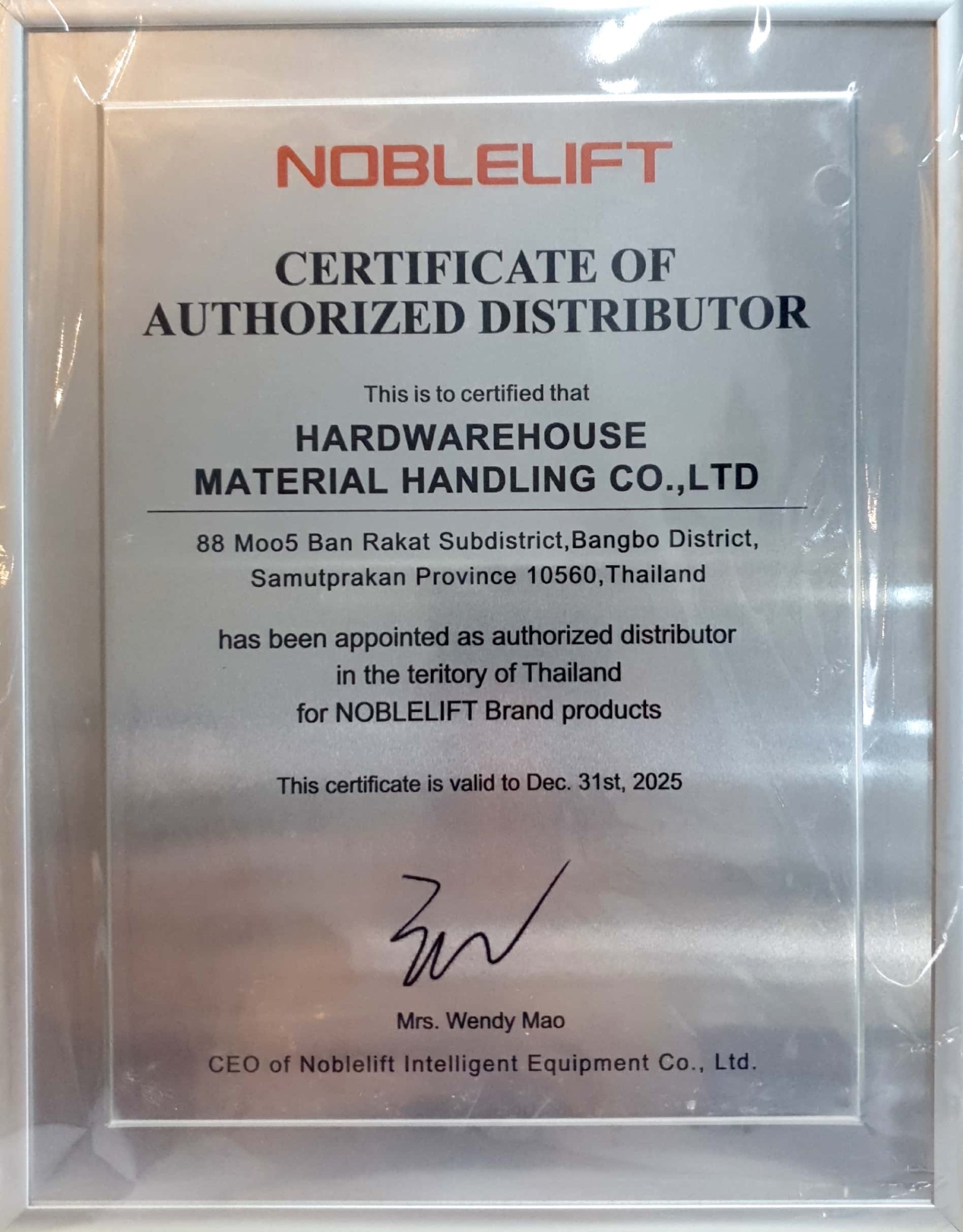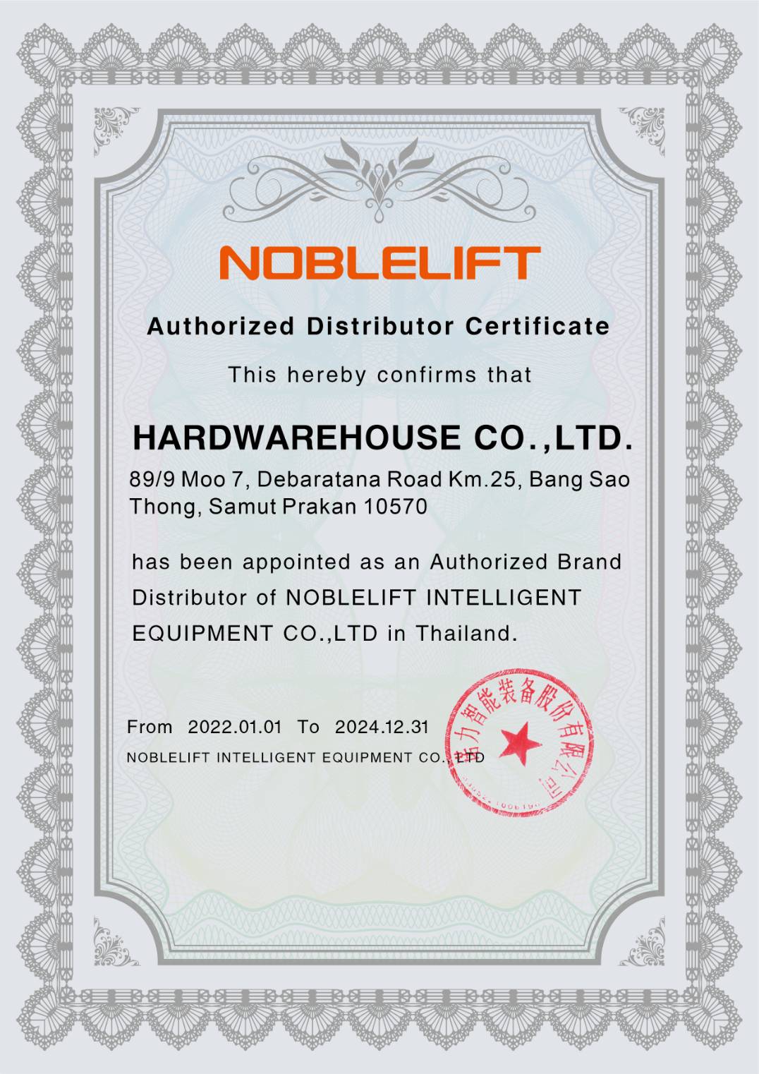 โดยทาง บริษัท ฮาร์ดแวร์เฮาส์ แมททีเรียล แฮนด์ดลิ่ง จำกัด ได้รับการแต่งตั้งโดยตรงจากทาง Noblelift ให้เป็นผู้จัดจำหน่ายอย่างเป็นทางการภายใต้เครื่องหมายการค้าแบรนด์ Noblelift ภายในประเทศไทย